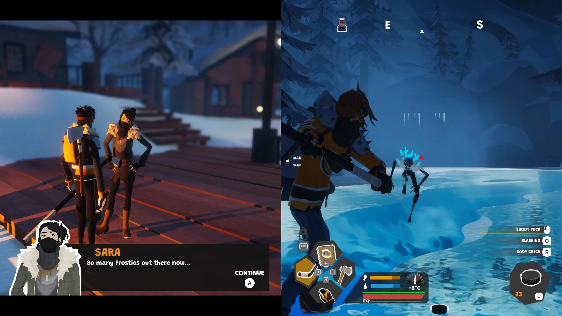 Get ready for the ultimate face off! Play co-op or solo as Max and Finley, two teens from a small hockey town as they take on a frozen wasteland. It's getting colder every day and frost zombies are everywhere. Your only hope? Keep the town's furnaces running and defend them against the frosty hordes!